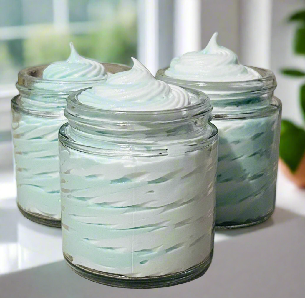 Morning Mist carries a light, elegant fragrance of bergamot, waterlily, neroli, and cedarwood, elevated with a soft mica shimmer for a subtle radiance. Whipped to perfection, it holds its shape, scoops easily, and melts luxuriously into the skin without greasiness.